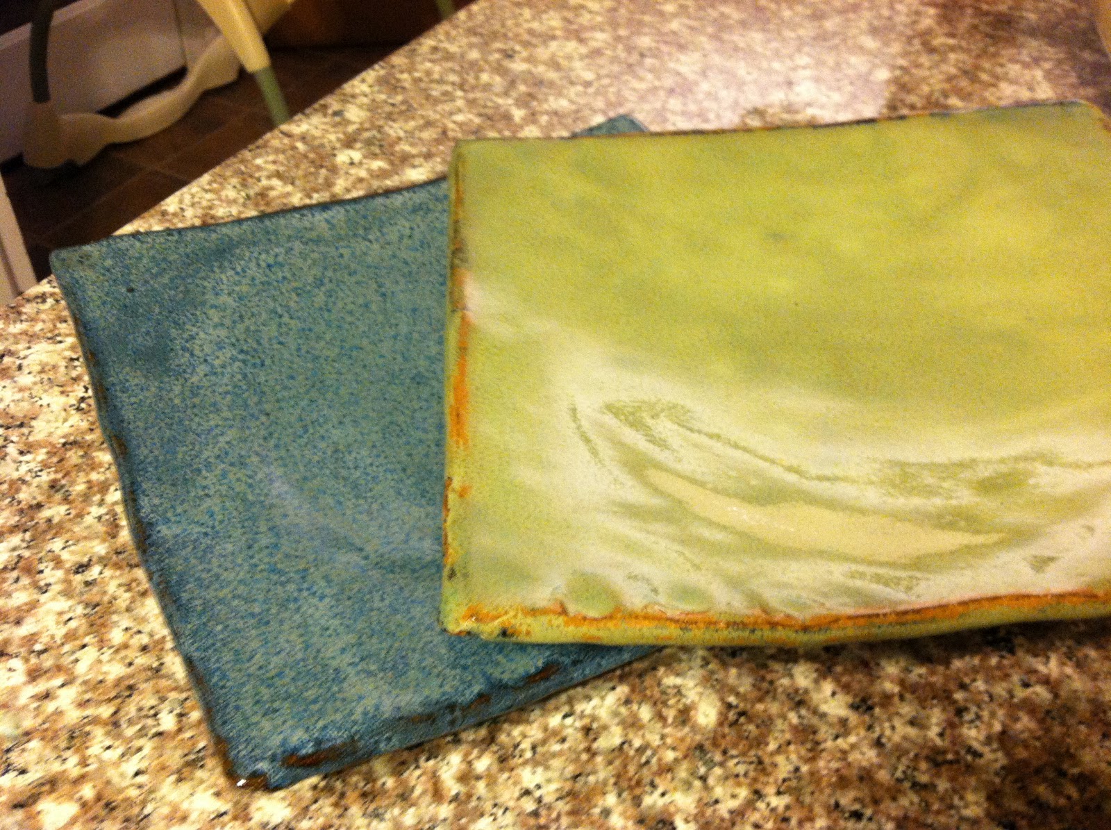 The green one is a beautiful apple green with distressed edges.